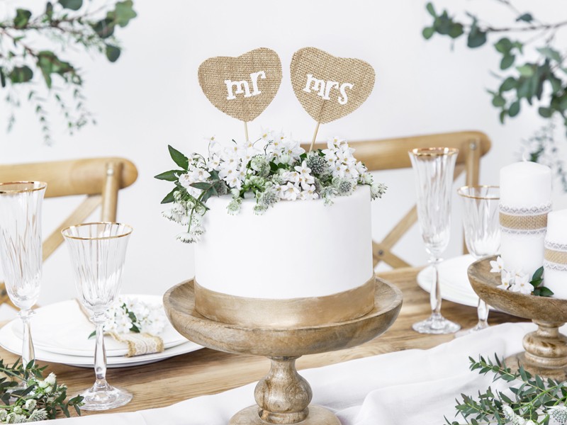 Co wybrać na zwieńczenie tortu? Gustowne toppery na tort weselny to wbijane napisy dopasowane do stylu dekoracji oraz kolorystyki. Love, Młoda Para, Just Married i wiele innych, kiedy mniej znaczy więcej, a styl grafiki wpisuje się w klimat tortu i całości ślubnej oprawy.