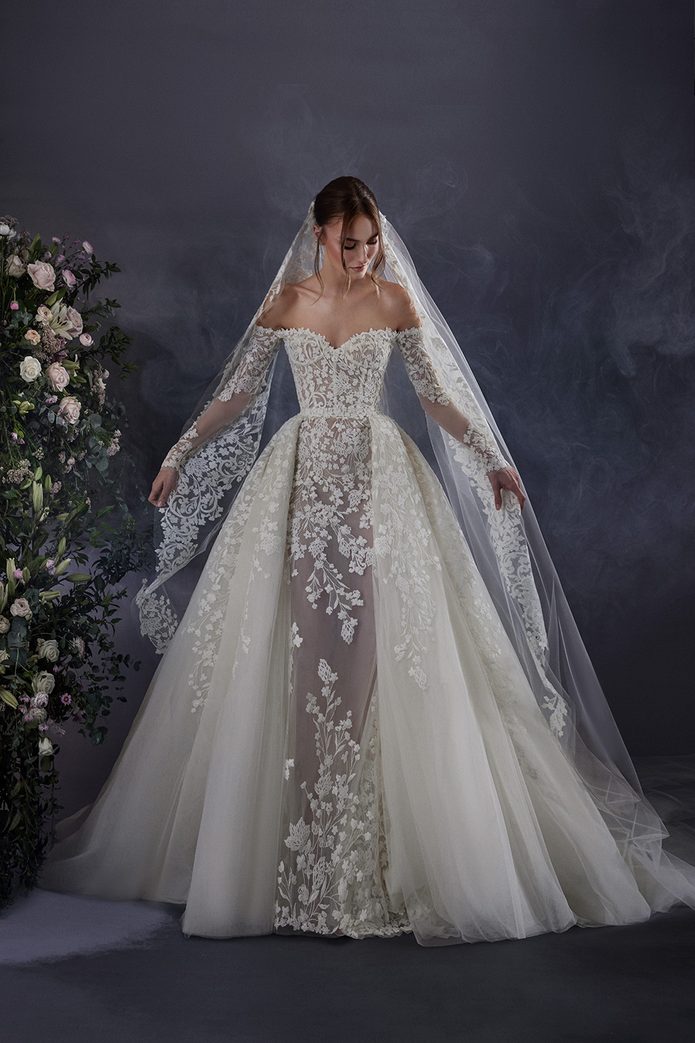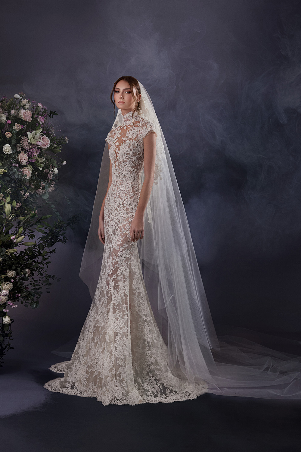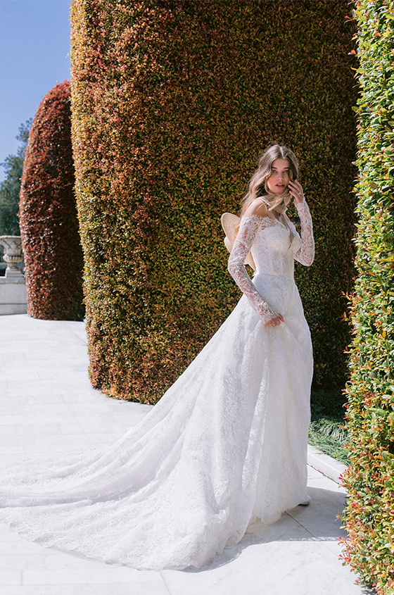 Koronkowe sukienki w klimacie princessy przywodzą na myśl kultową suknię ślubną księżnej Grace Kelly czy Diany Spencer. W tym wydaniu sukienki ślubne wydają się majestatyczne i okazałe. Koronkowe wstawki decydują o kluczowym efekcie. Model ze stójką wykończoną koronką i bufiastymi długimi rękawami ewidentnie kojarzy się ze ślubami royalsów z lat 80-tych i wcześniejszych.