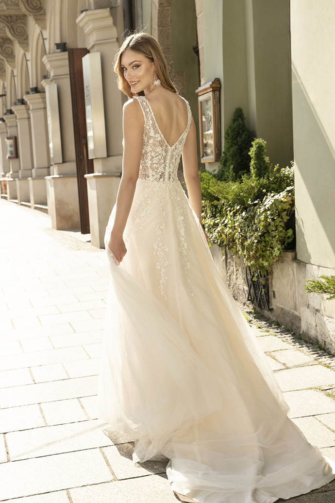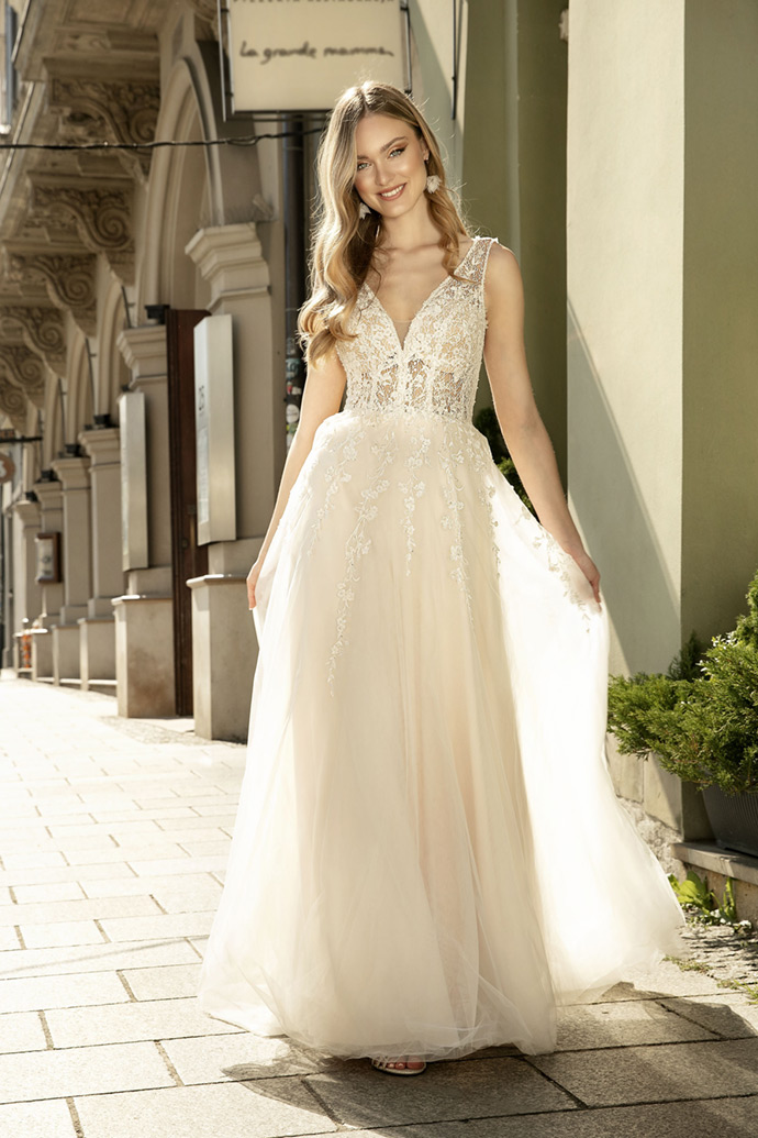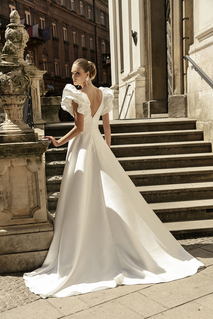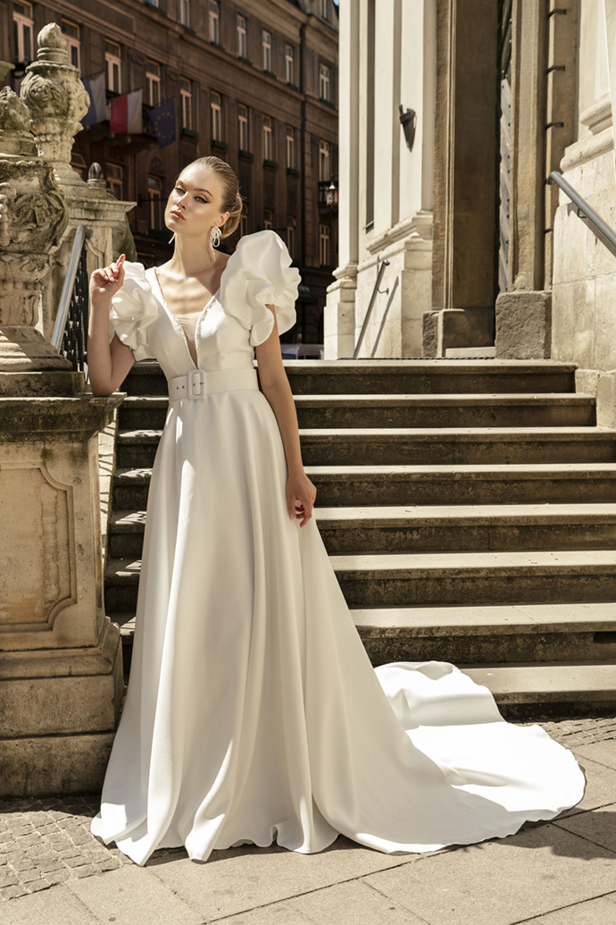 Wybrane modele z kolekcji sukien 2022 Agnes znajdziecie w Salonie Flossmann we Wrocławiu. Minimalistyczne, klasyczne, romantyczne – panny młode znajdą coś dla siebie w różnych stylach. Uwagę zwracają sukienki z bufiastymi rękawami. Wyrazisty romantyzm 🙂