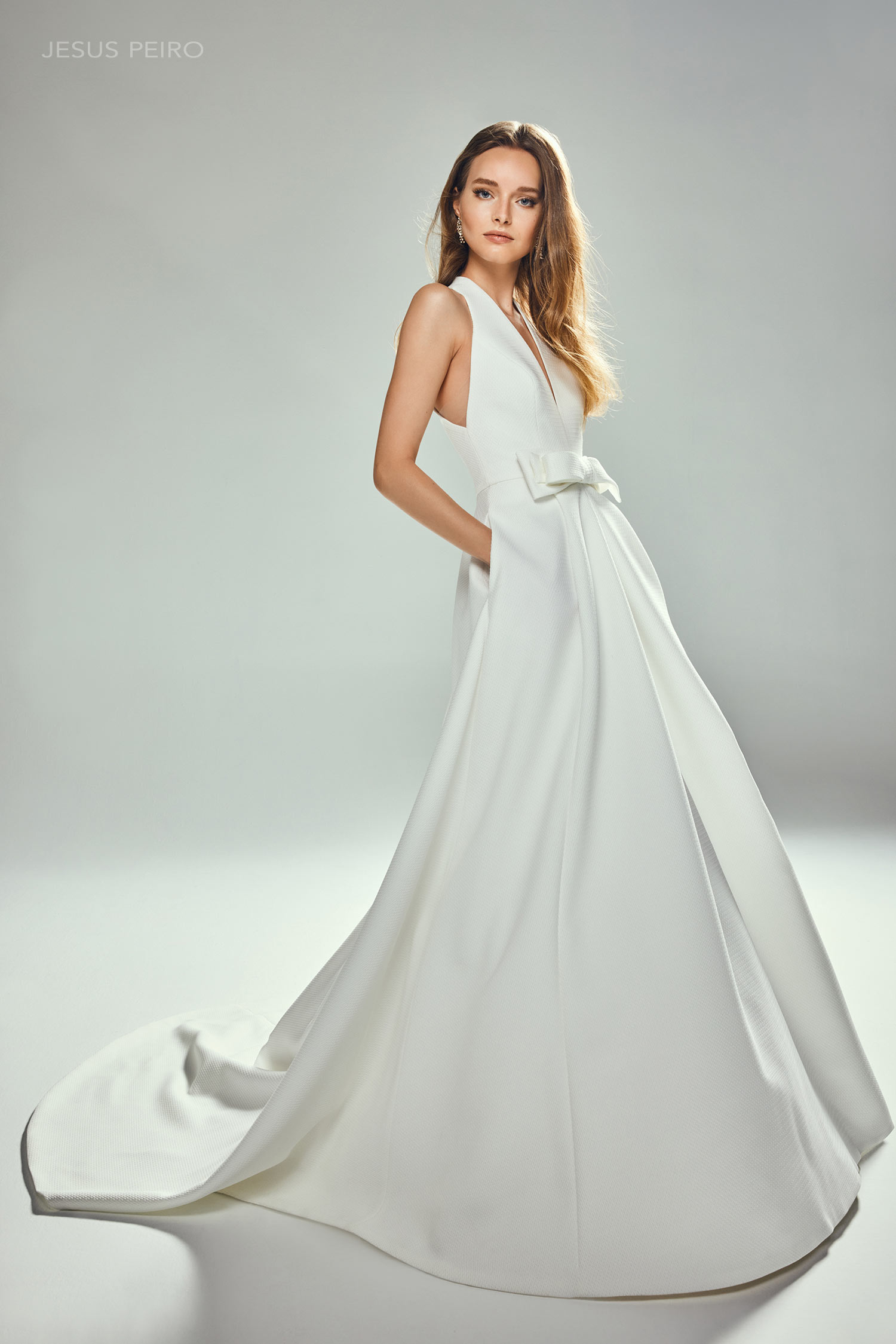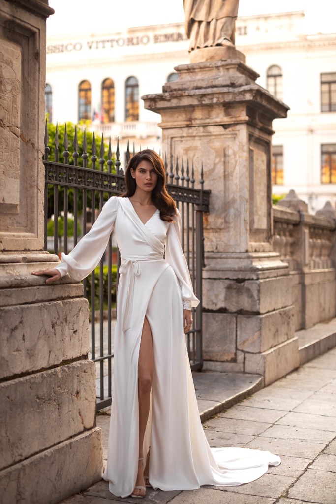Chyba od razu możesz poczuć, że łączy je prostota i minimalistyczna forma. Gładkie materiały z subtelnymi wzbogaceniami lub elementami, które nadają im charakteru. I specyficznego sznytu, charakterystycznego dla wyrafinowanych i odważnych panien młodych. Minimalistyczne suknie ślubne lub wersje ze spodniami w nurcie purystycznym spodobają się stylowym pannom młodym, którym bliska jest prostota z odrobiną wyrafinowania.