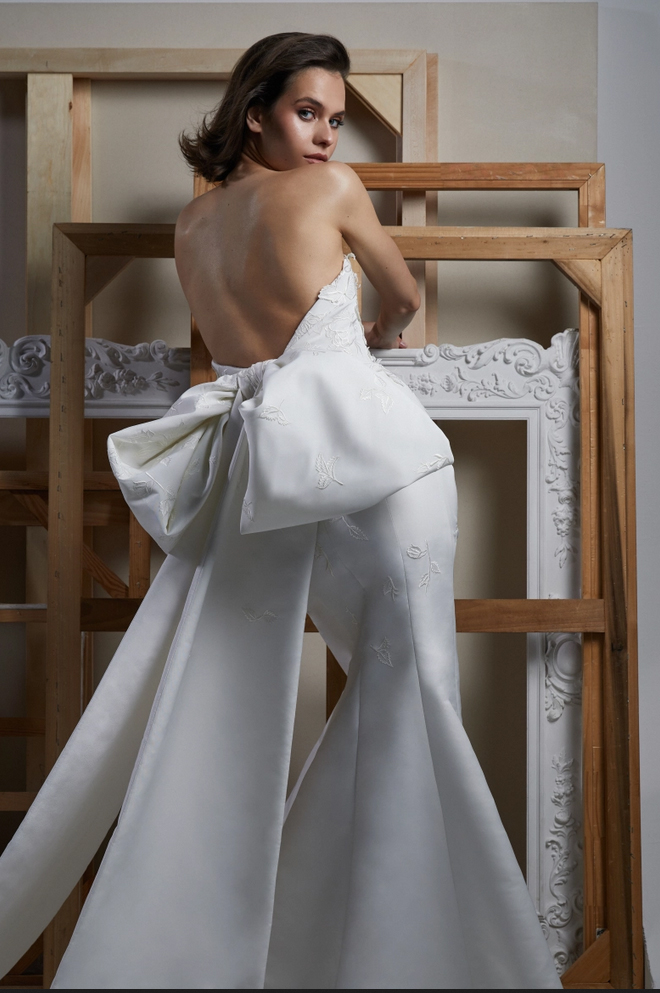 Do przedstawienia Wam wyklarowało mi się takie oto połączenie – minimalizm, suknie ślubne z kokardami oraz panny młode w garniturze, spodniach i spodnium. Cykl o trendach w modzie ślubnej rozpoczynamy więc od strony dosyć niszowej.