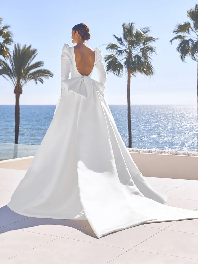 W kolekcjach sukienek ślubnych na 2023 i 2024 rok z pewnością silniej zarysowany jest trend z minimalistycznymi i gładkimi fasonami. Tych propozycji jest po prostu znacznie więcej, są ciekawsze i widać, że będzie na nie popyt. Są to fasony ponadczasowe. Kiedy mniej znaczy więcej, nie musisz przejmować się, że za kilka lat sukienka będzie wyglądała na przestarzałą. Co nie znaczy, że minimalistyczna sukienka musi być nudna – wręcz przeciwnie. Każda ma w sobie to „coś”. Bez względu na to czy pójdziesz w niej do ołtarza czy do ślubu w plenerze lub USC.