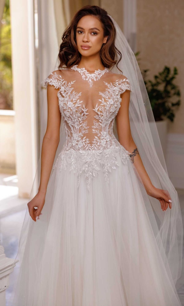 Sukienka ślubna 2023 delikatna princeska z welonem 2023