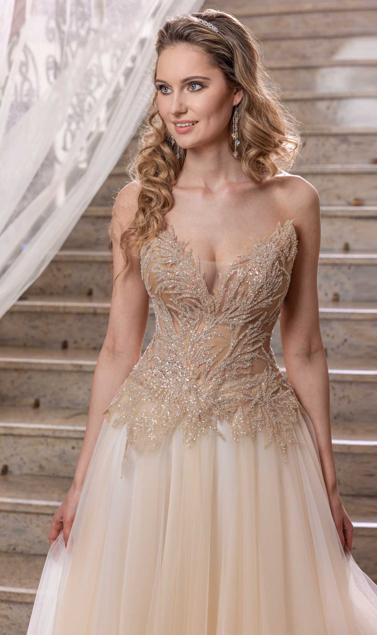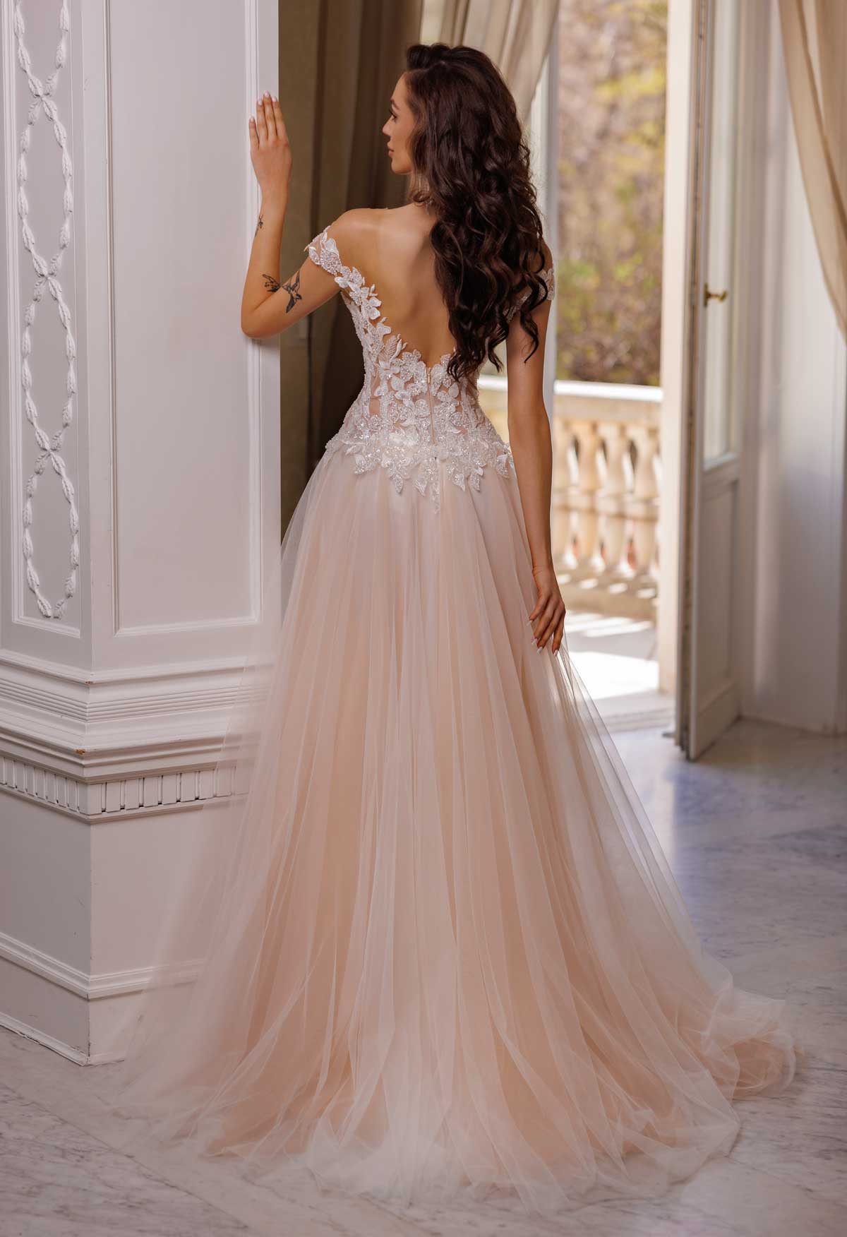 Brzoskwiniowa sukienka ślubna z gorsetem kolekcja 2023