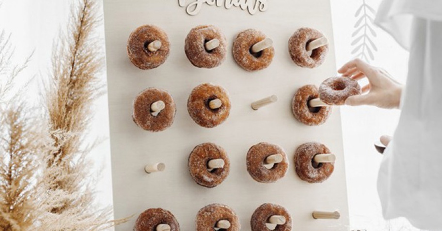 Tablica z donatami na przyjęcie weselne Ścianki z donatami wkradły się na polskie przyjęcia weselne wraz z modą w stylu rustykalnym i boho. Donut czyli pączek w kształcie krążka z dziurką w środku - po naszemu zwyczajnie oponka. W przeciwieństwie do tradycyjnych pączków, donaty nie...