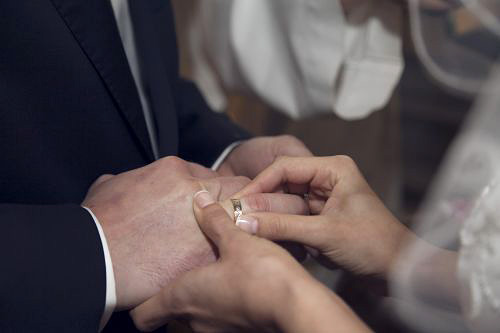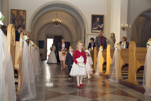I nadszedł ten najważniejszy moment – przysięga. Początkowo obawiałam się tej przysięgi, myślałam że zacznę płakać albo śmiać się, ale okazało się zupełnie inaczej. Podczas przysięgi uśmiechaliśmy się do siebie i patrzyliśmy sobie prosto w oczy – byliśmy tylko my, ksiądz, nikt poza tym. Po wszystkim poszliśmy pomodlić się do kaplicy. Jak skończyliśmy stanęliśmy przed wyjściem, złapaliśmy się za ręce i wyszliśmy z kościoła, wprost pod fontannę z ryżu, cukierków i pieniążków.